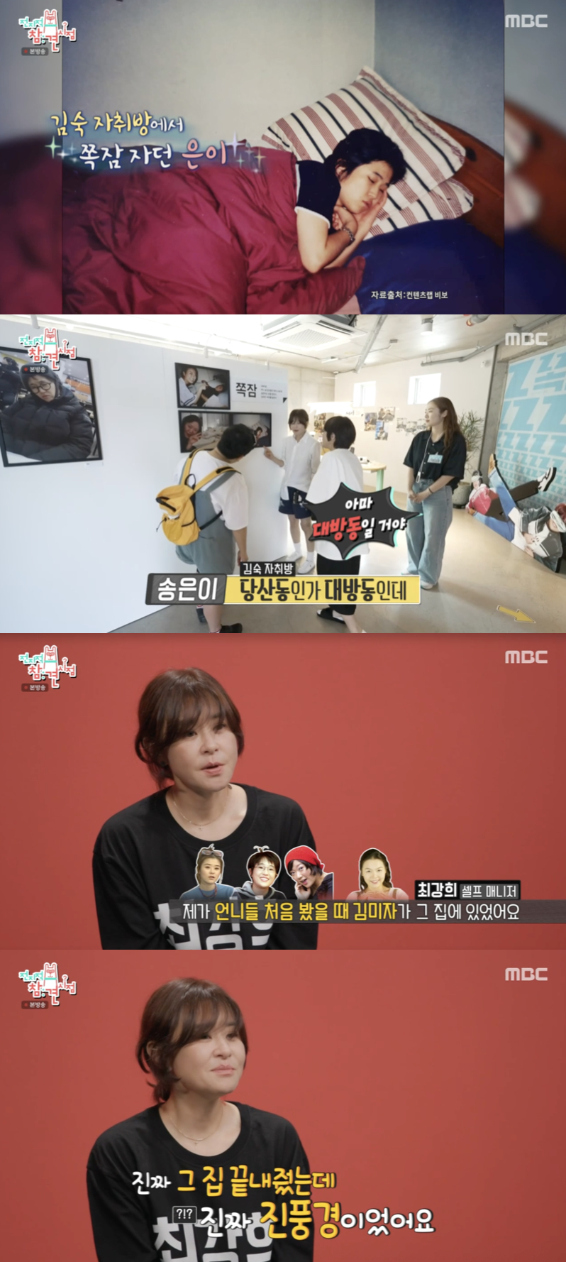 전시장에서 김미자는 김숙이 찍은 송은이의 첫 쪽잠 사진 촬영 당시를 정확히 기억해 눈길을 끌었다.