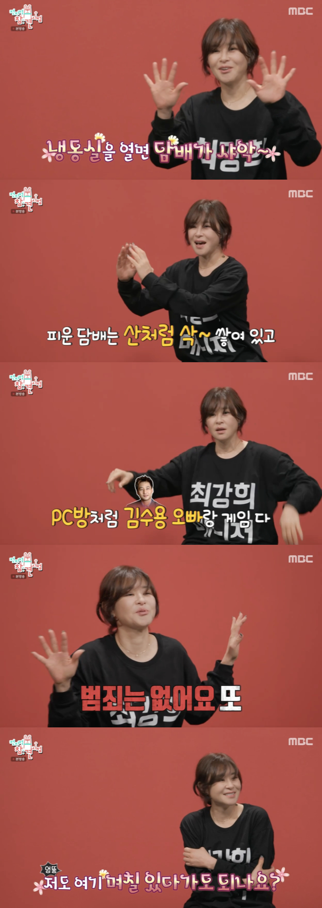특히 김숙의 자취방 첫 방문에 대해 "당산동 집에 우연히 갔을 때 미자가 설거지를 하고 있었다. 그 집은 진짜 진풍경이었다. 냉동실을 열면 돈다발처럼 담배가 쫘악~ 들어 있었다"고 폭로해 모두를 놀라게 했다.