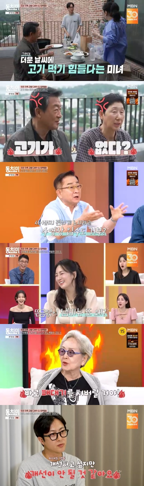 2일 방송된 MBN 예능 프로그램 '속풀이쇼 동치미'는 '피서 말고 피신하고 싶다'는 주제로 꾸며진 가운데, '문제적 부부' 정미녀, 전민기가 시부모님과 함께 가족 여행을 떠나는 모습이 그려졌다.