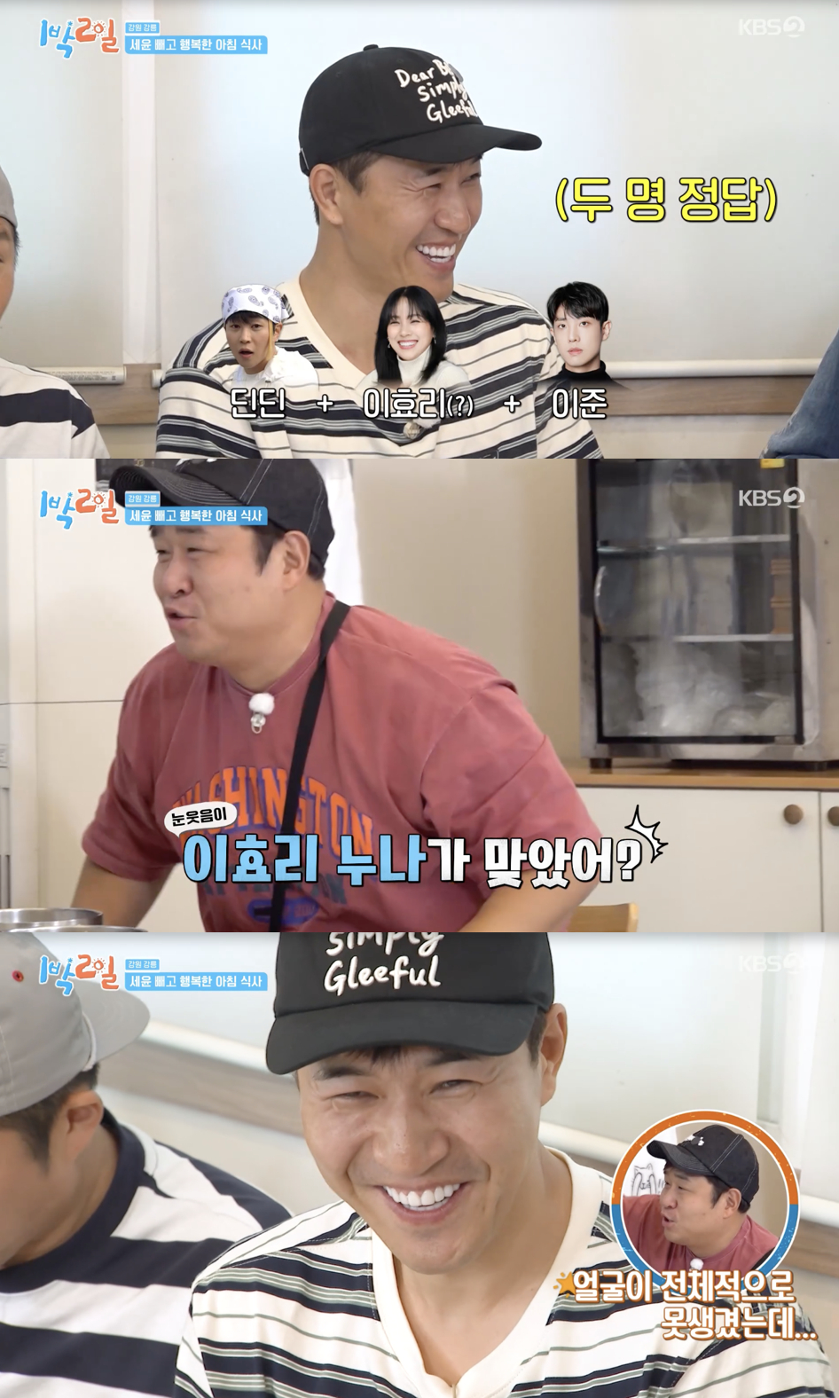 이날 멤버들은 잠자리 복불복을 걸고 '눈썰미 인물 퀴즈'를 진행했다. 해당 게임은 사진에 합성된 3명의 인물을 맞히면 되는 게임이었다. 해당 게임에서 '패요(패배요정)'인 이준은 뛰어난 눈썰미로 우세를 보였다.