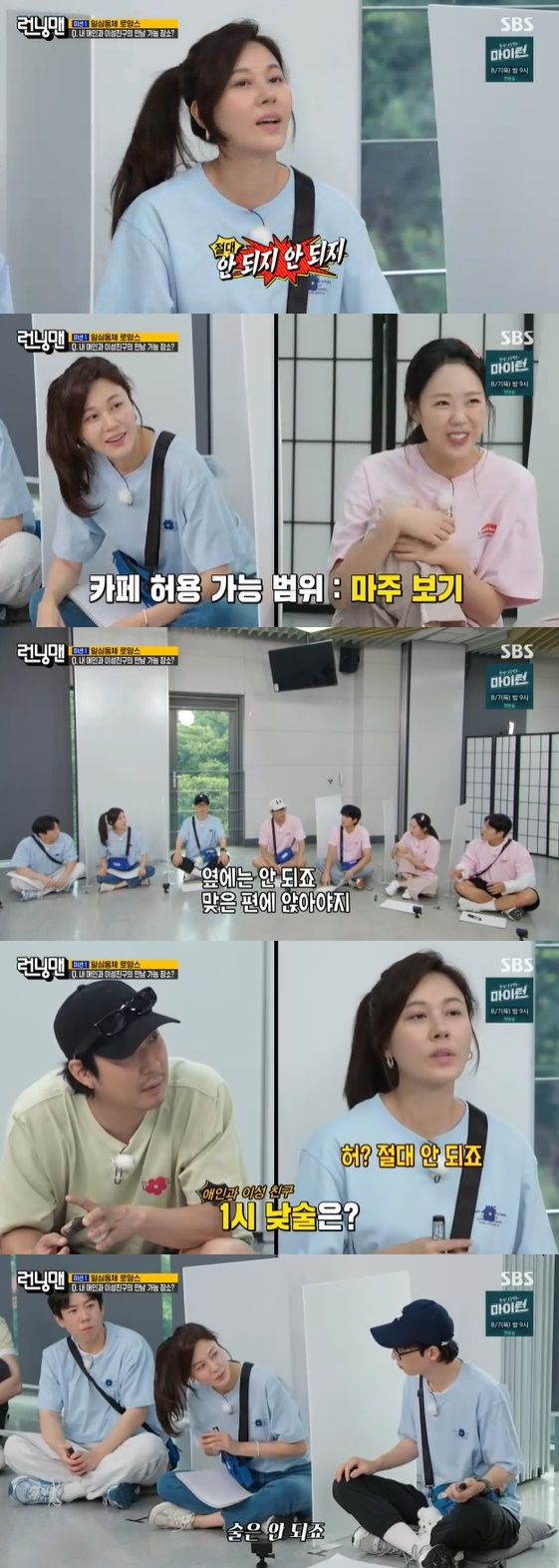 이에 김종국은 "자리가 일자로 된 데밖에 없다"고 상황을 설정하자 김하늘은 "다른 카페 가야 한다. 옆에 앉는 건 말이 안 된다"라고 보수적인 입장을 고수했다.