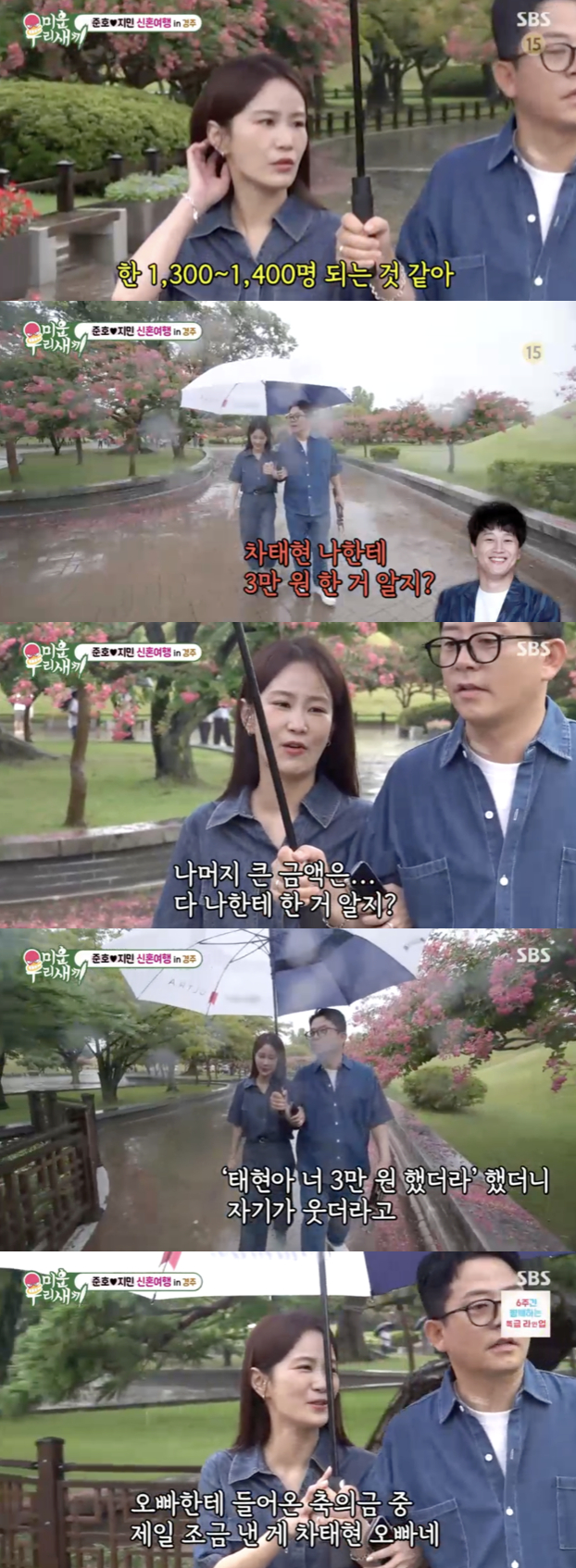 3일 방송된 SBS 예능 프로그램 '미운 우리 새끼'에서는 개그맨 김준호와 김지민 부부가 경주로 신혼여행을 떠난 모습이 공개됐다.