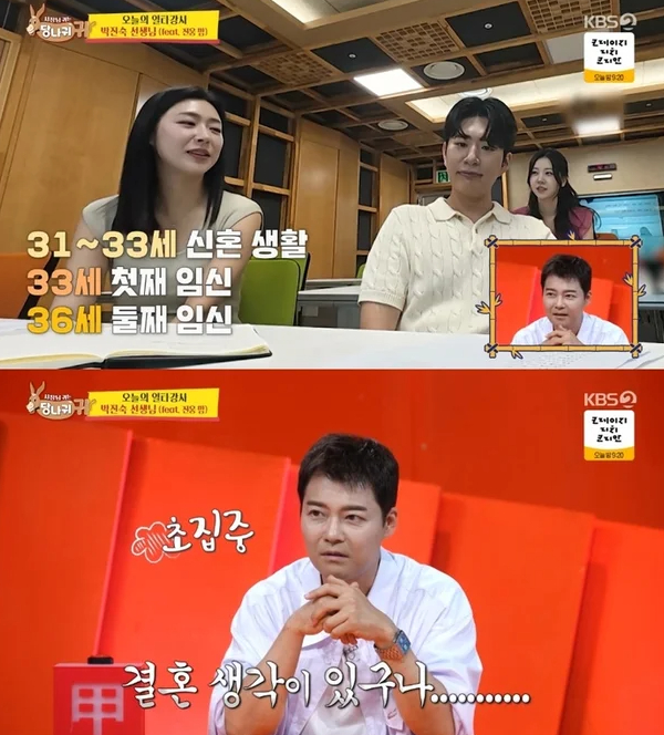 이에 홍주연은 "31세에 결혼해서 2년 신혼 생활 즐기고 33세에 첫째를 낳고 36세에 둘째를 낳는 게 목표"라며 "첫째는 딸, 둘째는 아들"이라고 답했다.