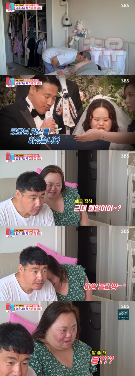 4일 방송된 SBS 예능 프로그램 '동상이몽 2 - 너는 내 운명' 400회 특집에는 드라마 '우리들의 블루스'를 통해 배우 한지민 언니 역으로 사랑받은 다운증후군 캐리커처 작가 정은혜, 조영남 부부가 출연했다. 이들 부부는 발달장애인 공공일자리에서 만나 1년간의 연애 후 지난 5월 결혼했다.
