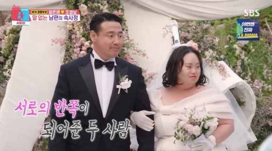 지난 4일 방송된 SBS 예능 프로그램 '동상이몽 2 - 너는 내 운명'(이하 '동상이몽 2') 400회 특집에는 tvN 드라마 '우리들의 블루스'를 통해 배우 한지민 언니 역으로 사랑받은 다운증후군 캐리커처 작가 정은혜, 조영남 부부가 출연했다. 이들 부부는 발달 장애인 공공일자리에서 인연을 맺은 뒤 1년 간의 연애 끝에 지난 5월 결혼했다.