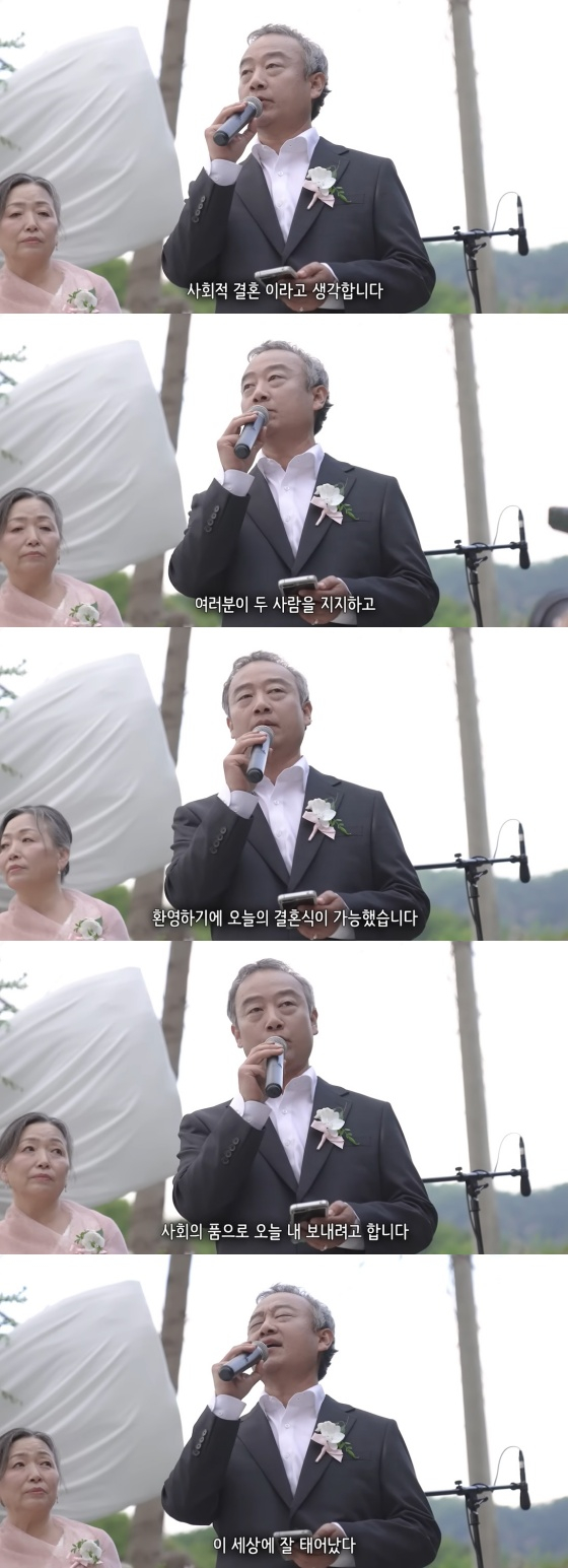 정은혜 아버지 역시 발달 장애인들의 평범한 일상을 기원하는 축사로 시선을 모았다. 정은혜, 조영남의 결혼식 당시 축사 영상이 공개된 것.