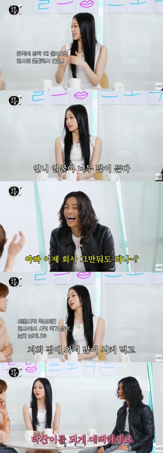 애니는 "연습 끝나고 밤늦게 배고플 때 회사에서 배달시키기 눈치 보이니까 저희 집에서 많이 먹었다. (가족들이) 멤버들을 다 좋아한다. 특히 타잔이를 예뻐한다"고 털어놨다.
