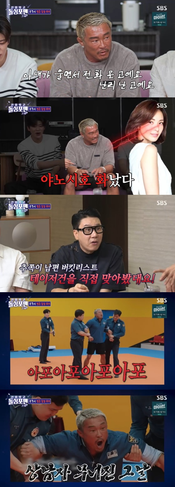 심지어 추성훈은 최근 테이저건까지 맞았다고. 이상민은 추성훈을 향해 "테이저건 맞는 게 버킷리스트였는데 그걸 한 거냐. 저도 궁금하긴 하다. 어땠냐. 아내가 걱정할 건데 왜 했냐"고 물었다.