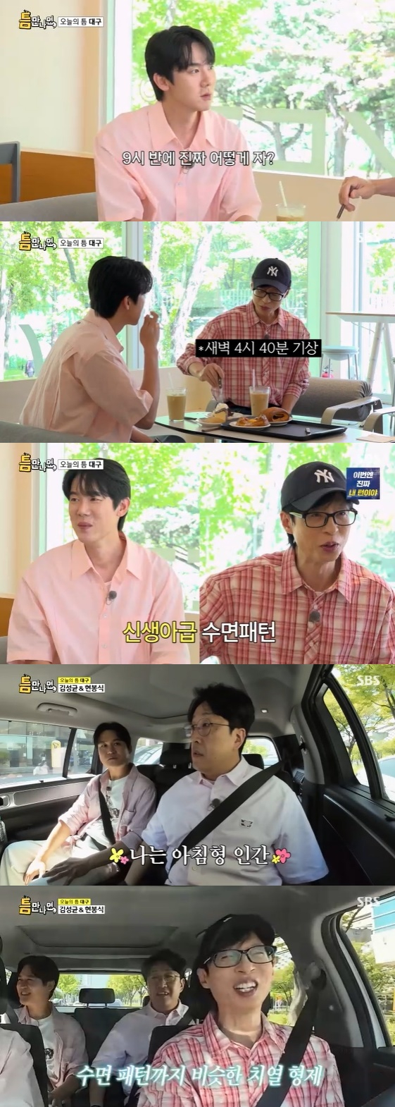 한편 현봉식 역시 유재석과 비슷한 수면 패턴을 고 공개해 눈길을 끌었다. 그는 "나는 아침형 인간이다. 기본 10시에 취침하고 오전 5시 반에 기상한다"고 설명했다.