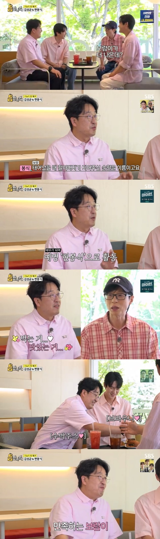 그런가 하면 유연석은 현봉식의 본명이 '현보람'이라고 공개해 놀라움을 자아냈다. 모두가 믿을 수 없다는 표정을 짓는 가운데 현봉식은 "본명은 보람이다. 할아버지가 지어주신 순 한글 이름이다. 여섯살 때까지 보람이로 살다가 애들이 놀려서 '현재영'으로 개명했다"고 털어놨다. 이어 "배우를 시작하면서 예명을 봉식이로 했다. 예명이라는 소리를 들으면 사람들이 약간 배신감을 느끼더라"라고 덧붙여 웃음을 자아냈다.