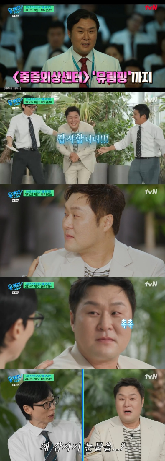 배우 윤경호가 '유퀴즈' 등장과 동시에 눈물을 흘렸다.