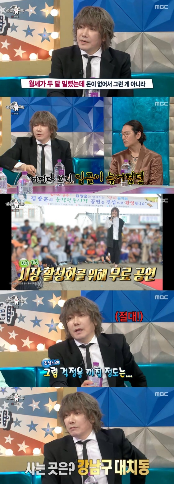김장훈은 최근 불거진 '생활고' 루머에 대해서도 언급했다. 그는 "두 달치 월세가 밀렸는데 그게 돈이 없어서 밀린 게 아니다. 어쩌다 보니까 그렇게 된 거고, 바로 월세를 줬다"고 해명했다.