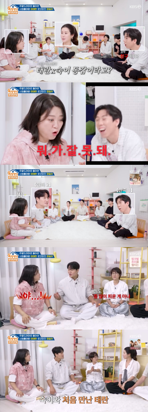 7일 방송된 KBS 2TV 예능 프로그램 '옥탑방의 문제아들'에는 배우 이태란, 정일우가 게스트로 출연했다.