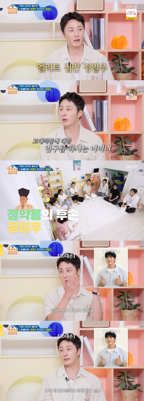 정일우는 자신이 배우 정해인과 함께 정약용의 후손이라는 사실도 밝혔다. 그는 "정해인 씨가 저보다 위"라고 또 하나의 특별한 인연을 언급했다.