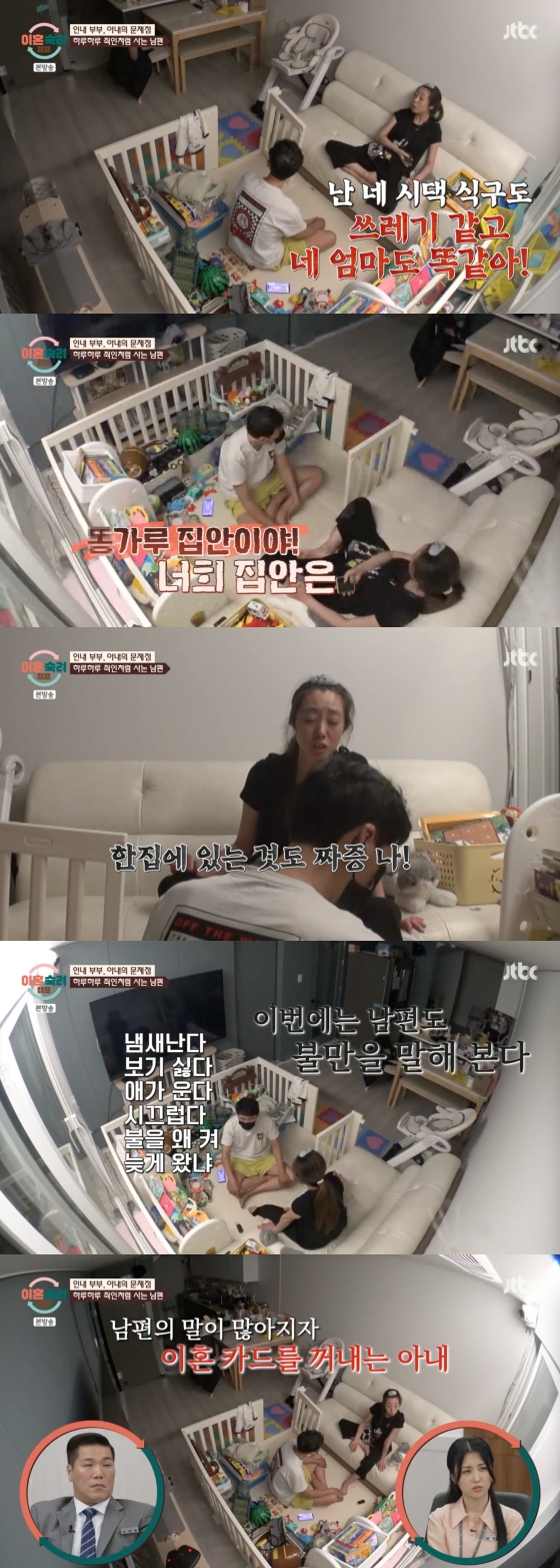 이어진 관찰 영상에서 아내는 남편에게 "왜 나까지 빚을 지게 만드냐. 나는 네 얼굴만 보면 네 엄마, 네 시댁 식구 생각 나서 열이 받아 못 살겠다. 이혼하러 가자"고 분노를 표출했다.