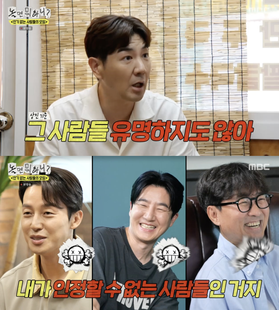 이에 한상진은 하하를 향해 억울함을 토로했다. 그는 "네가 나한테 안 유명하다고 하지 않았냐. 그런데 그 이후 나온 사람들이 내가 인정할 수 없는 사람들이었다. 그 사람들 유명하지도 않아"라고 '모두 까기'를 시전하며 웃음을 자아냈다.