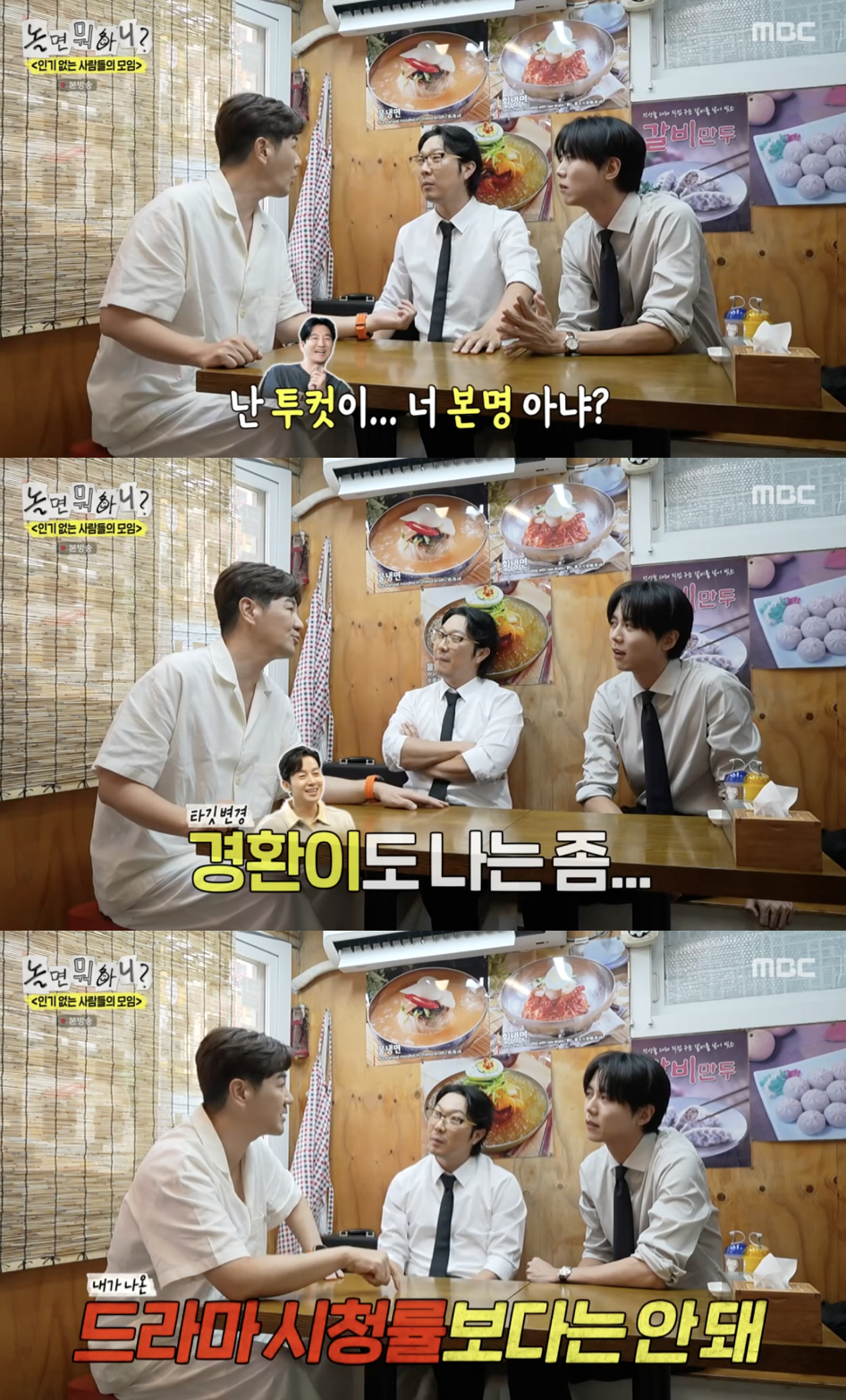이어 '인사모' 멤버들을 하나씩 언급하며 "투컷 본명 아냐? 김정식 씨는 밥풀떼기 밖에 더 있냐. 허경환도 난 좀 그렇다. (허경환이 출연한 프로그램) 다 합쳐도 내가 나온 드라마 시청률보다 안 된다"라고 자존심을 드러냈다.