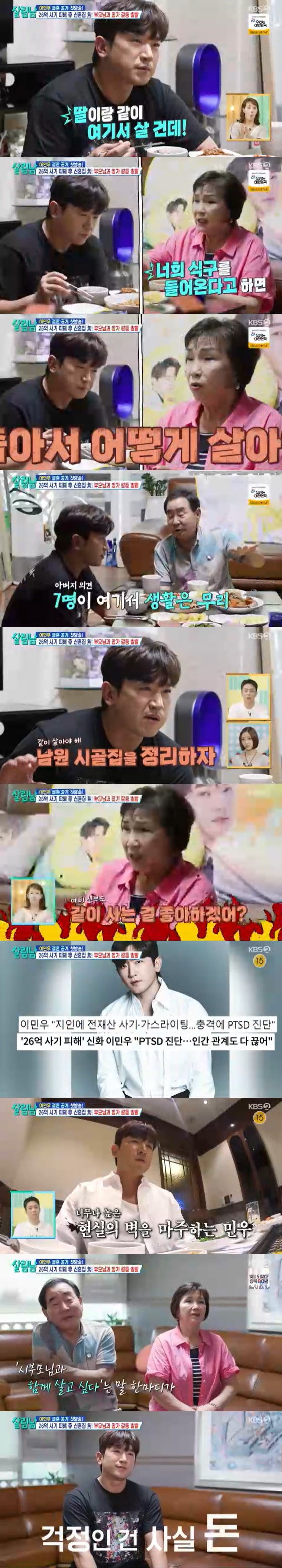 실제로 이민우는 지인에게 26억 원의 사기 피해를 당해 정신과 치료를 받을 정도로 큰 충격을 받은 상황. 그는 "당장 집은 어떡하지, 애 교육은 어떻게 시켜야 하고 가슴이 턱 막힌다. 요즘 고민이 많다"라고 얘기했다.