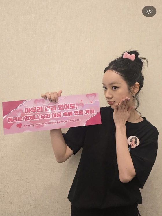 또 혜리는 팬미팅 플래카드를 한 손에 든 채 깜찍한 표정을 지어 시선을 모았다.