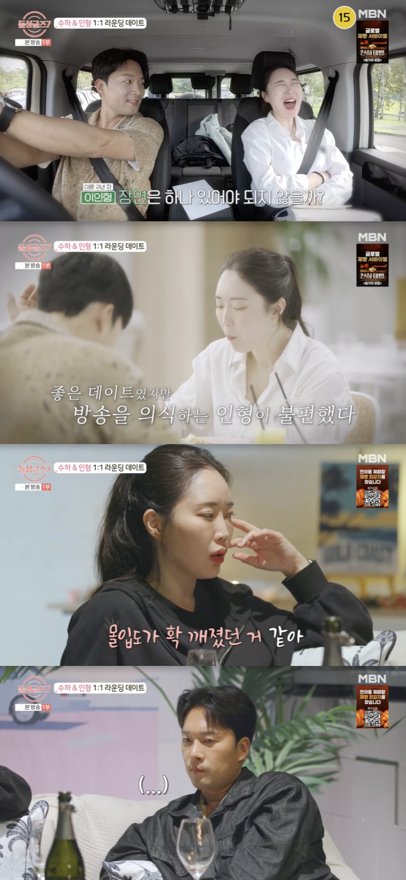 대화 도중 수하는 데이트 당시를 언급하며 인형에게 "나한테 호감이 있는 것처럼 표현하는데 '방송에 내가 재밌어 보이나?'라는 생각이 들었다"며 솔직한 심정을 밝혔다. 이어 "너한테 나는 재밌는 소스인가? 라는 생각이 들면서 몰입도가 확 깨졌던 것 같아"라고 덧붙였다.