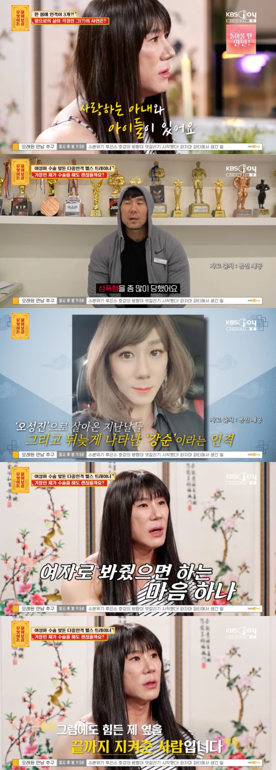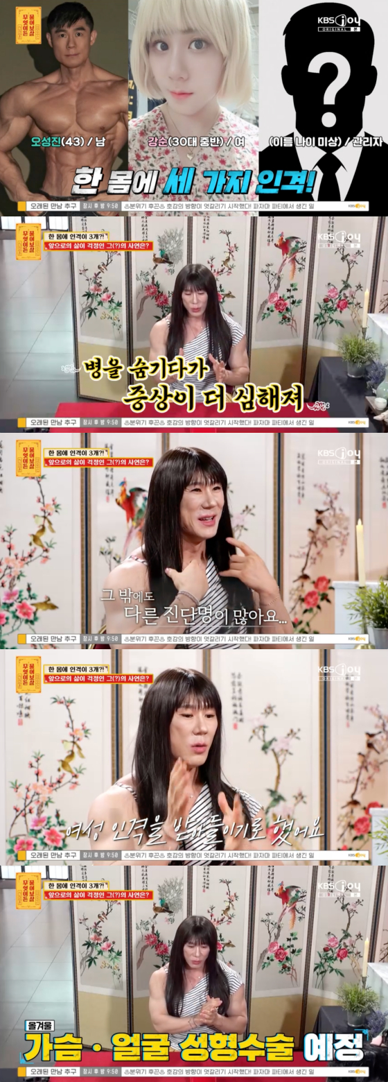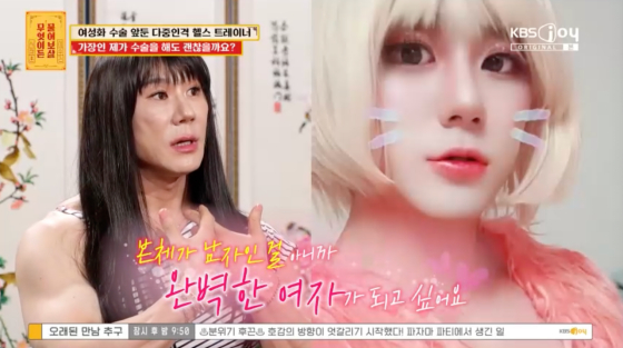이어 "7년 간 꾸준히 치료를 받아서 각 인격이 서로를 인지한다. 헬스 트레이너 일을 할 때는 사회적 환경에 맞춰서 인격이 나온다. 현재 성 정체성 장애도 있고 이인증도 겪고 있다. 현실이 낯설어지는 무서운 질환이다. 대학병원에서 진료를 꾸준히 받았는데 남성 호르몬을 맞아도 여성 인격이 안 사라져서 여성 호르몬을 맞고 있다. 겨울에 가슴, 얼굴 성형 수술을 할 예정인데 그 이후 사회 생활을 하면서 먹고 살 수 있을지 걱정"이라고 털어놨다.
