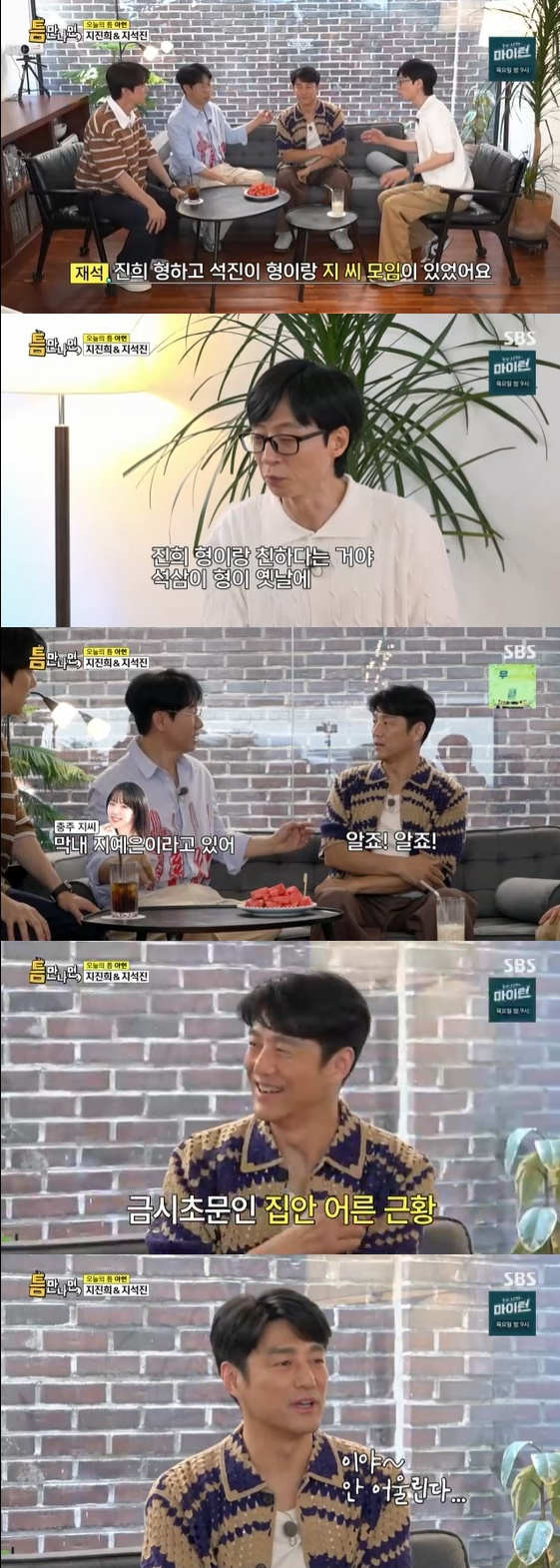 12일 방송된 SBS 예능 프로그램 '틈만 나면'에는 지진희, 지석진이 '틈 친구'로 출격해 아현동 탐방에 나섰다.