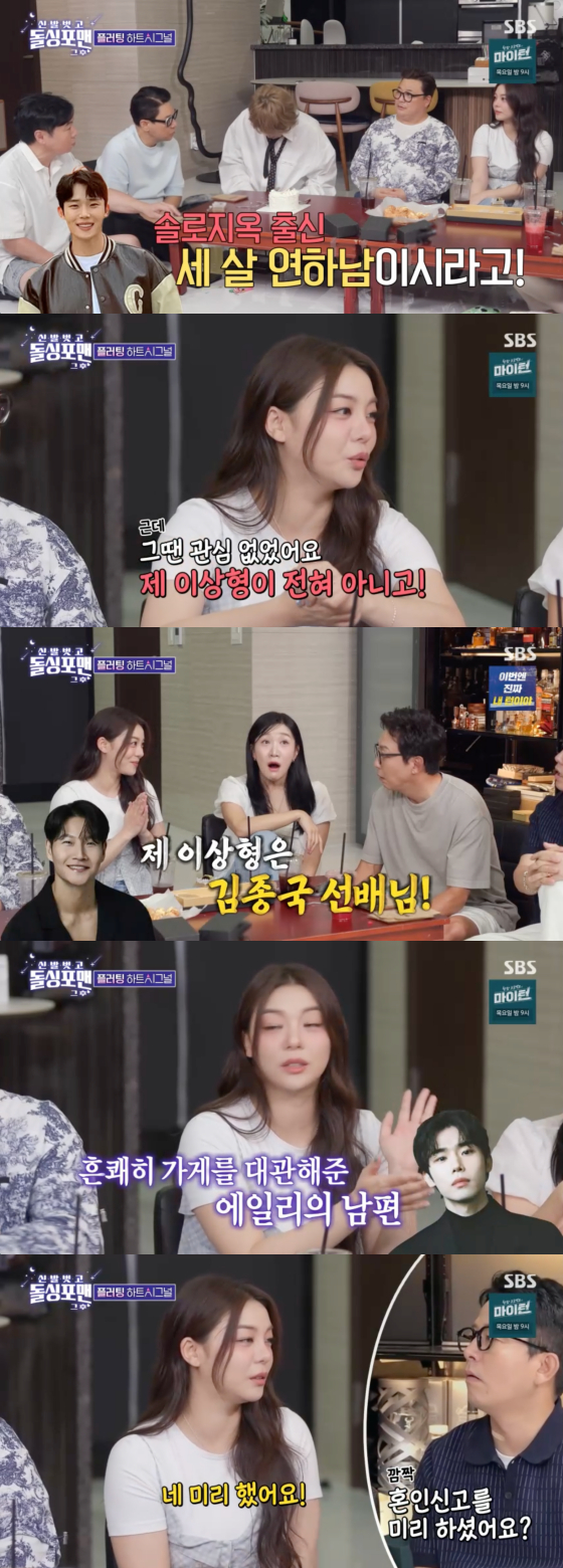 이날 에일리는 최시훈과 첫 만남에 대해 "저는 그때 남편을 좋아하지는 않았다. 제 이상형은 아주 확고했다. 가수 김종국 같은 분이 제 이상형"이라고 밝혔다.