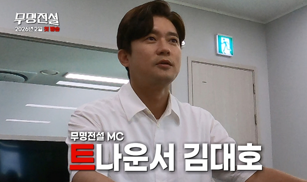 13일 MBN에 따르면 김대호는 가수 장민호와 함께 내년 2월 말 첫 방송 예정인 '무명전설' MC로 발탁됐다. 무명에서 전설로 거듭날 '트로트 사내들'의 대장정을 함께한다. 동시에 공개된 '무명전설' 티저 영상에서는 MC 발탁 후 김대호와 제작진의 미팅 현장이 그려져 관심이 집중됐다.