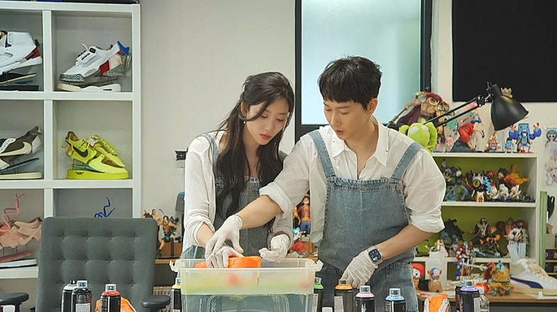 드디어 전 세계에 딱 하나뿐인 커플 운동화를 완성한 장우혁은 직접 신발을 신겨주겠다며 무릎을 꿇고 오채이에게 미리 준비해온 양말까지 신겨준다.