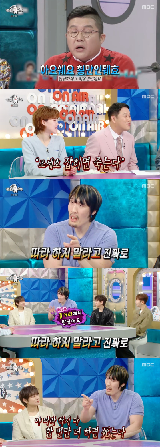 이에 김구라가 "예전에 조세호한테 '조세호 잡히면 죽는다'고 말했다는 일화는 사실이냐"고 묻자 최홍만은 망설임 없이 "사실"이라고 답했다.