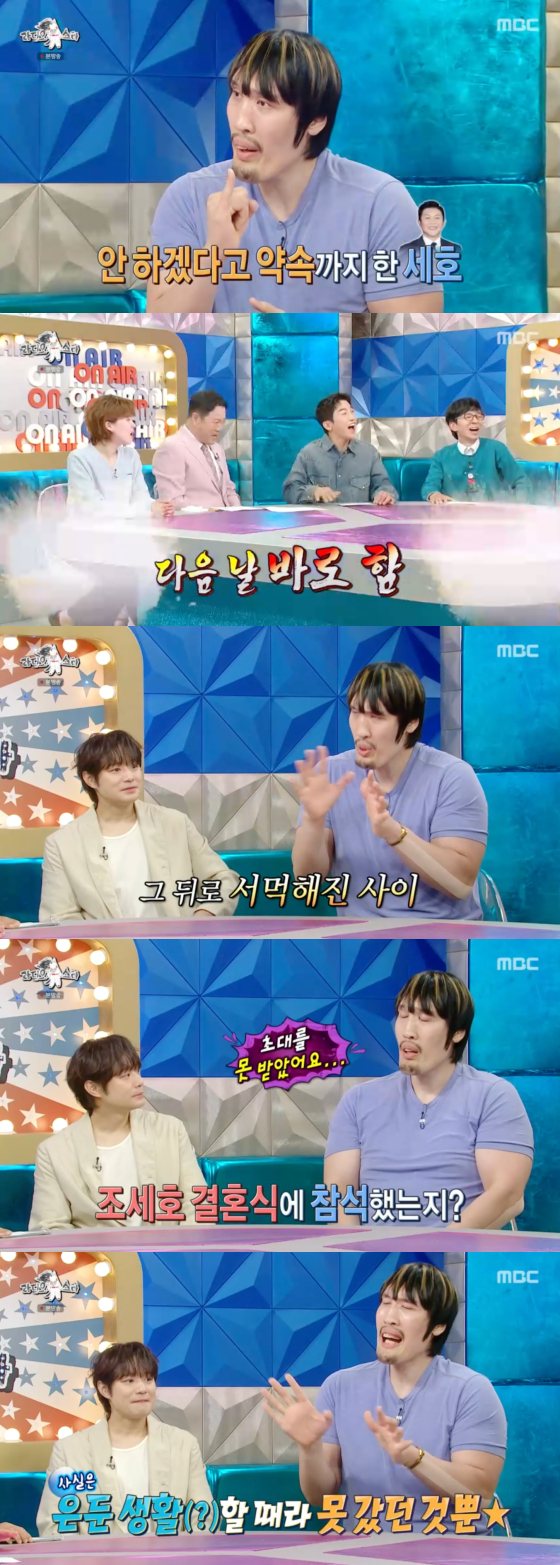 김구라는 "조세호 결혼식에는 갔냐"고 물었고, 최홍만은 "초대를 못 받았다"고 털어놨다.