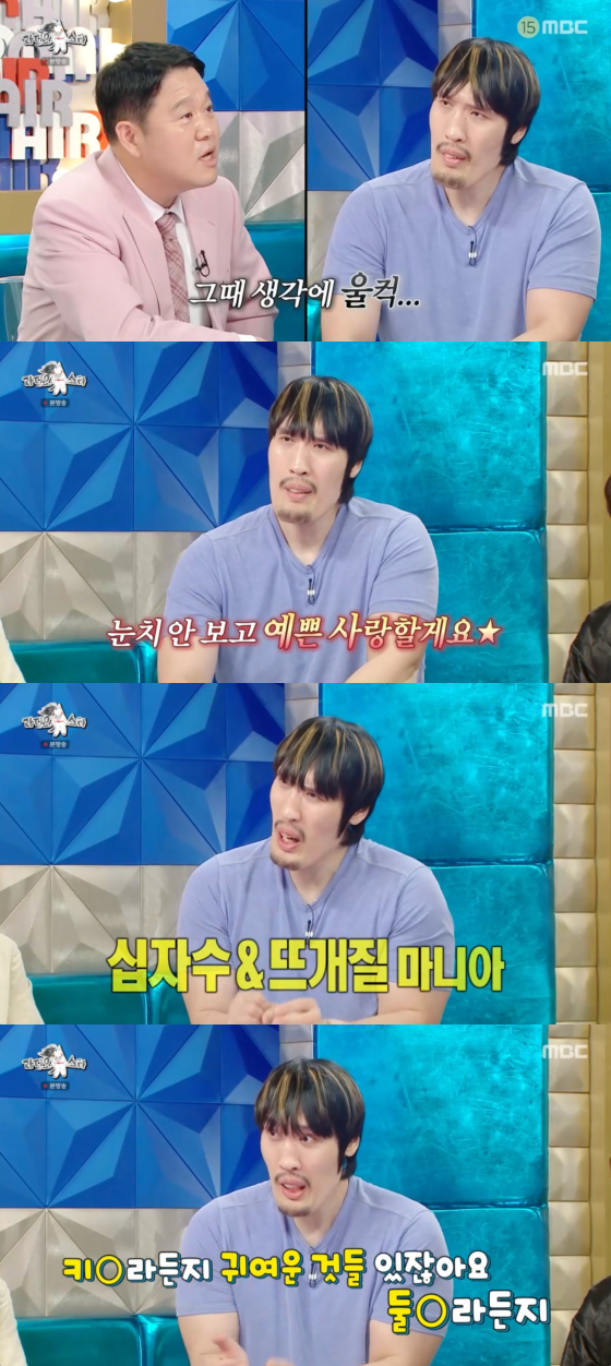 김국진은 그런 최홍만을 향해 "사랑에 빠지면 미친 손재주를 발휘하는 편이냐"고 궁금증을 표했고, 최홍만은 "십자수, 뜨개질을 좋아한다"고 답했다.