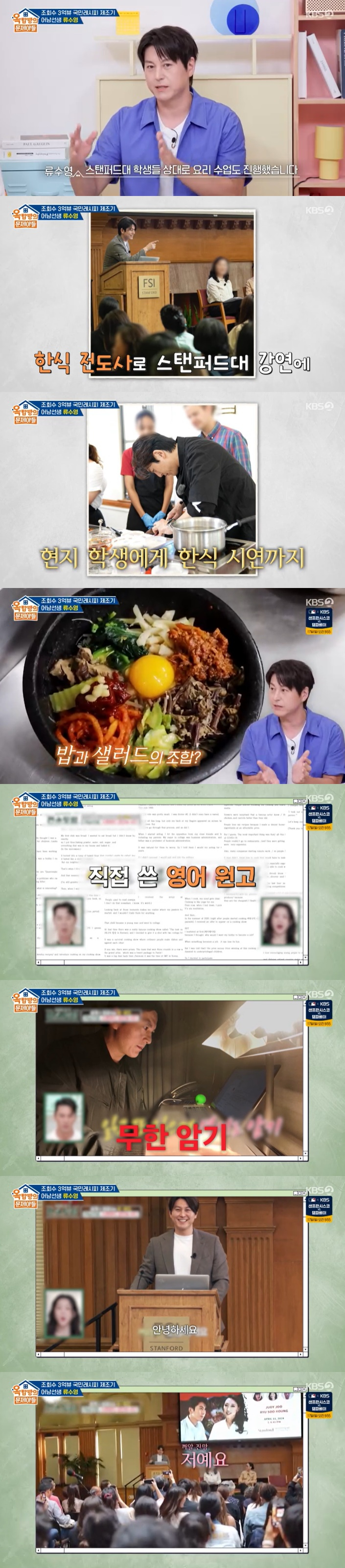 배우 류수영이 아내인 배우 박하선의 권유로 '편스토랑' 레시피 대박에 이어 출판계 접수, 스탠포드 대학 강의까지 해냈다.
