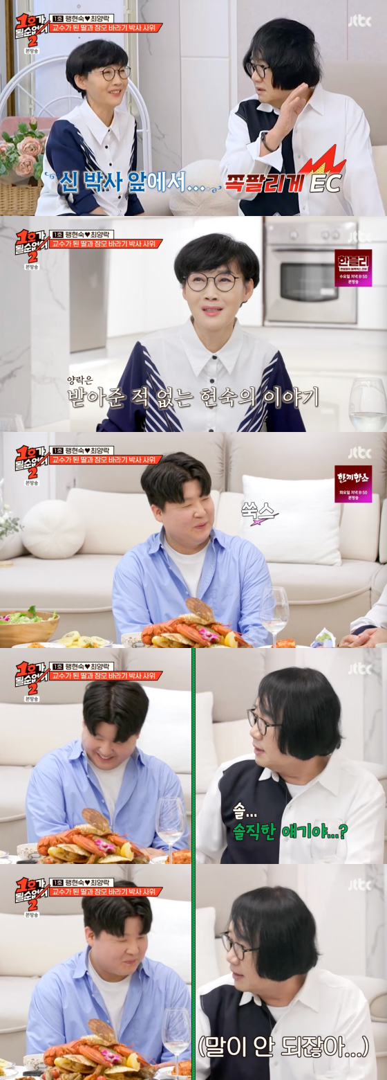 팽현숙의 돌발 행동에 언짢아진 최양락은 결국 "그만해라. 사위 앞에서 창피하게 뭐하냐"고 화를 냈다.