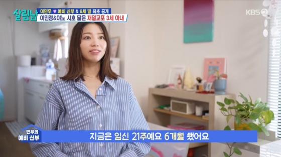 이후 임신 6개월인 이아미의 모습도 공개됐다. 이아미는 "출산 예정일은 12월 4일"이라고 말했고 이민우는 "3개월 전보다 수척한 모슶에 미안함이 들었다"라고 말했다.