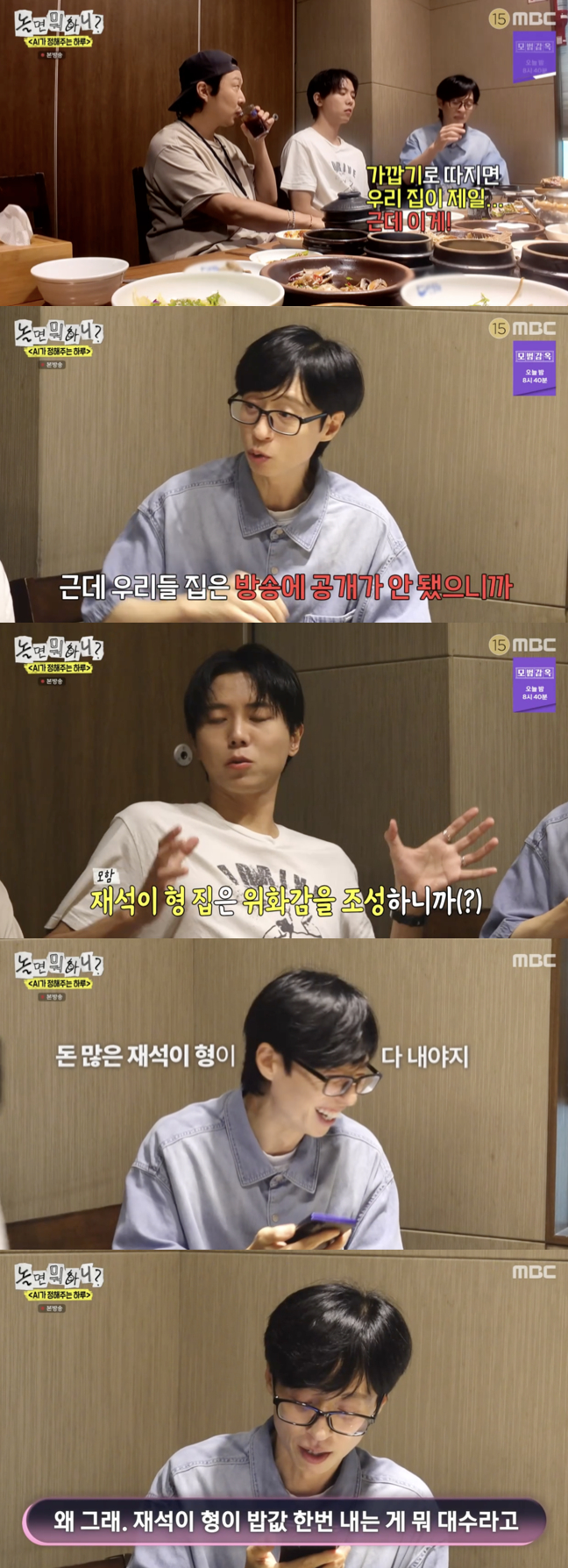 한편 이날 AI는 밥값과 집들이 선물 비용 역시 돈을 가장 많이 버는 유재석이 부담해야 한다는 추가 의견을 제시했고, 유재석은 억울해하며 현실 반응을 보여 또 한 번 웃음을 자아냈다.