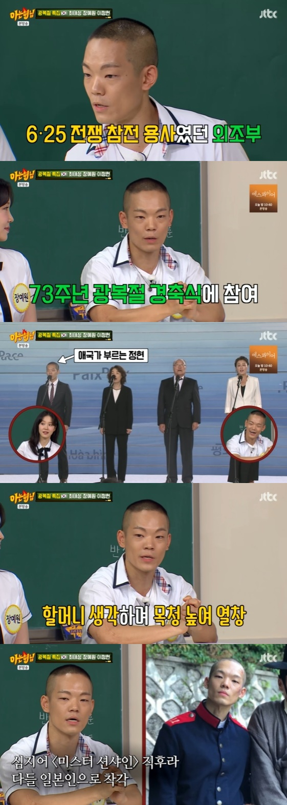 그런가 하면 이정현은 광복절 경축사에 참여했다가 일본인으로 오해받은 사연을 전해 시선을 모았다. 그는 "제73주년 광복절 경축식에 국가유공자 후손으로 초대받아 애국가를 제창했다"며 "할아버지는 이미 돌아가셨을 때였고 할머니가 애틋하게 보실 것 같아서 되게 여 열심히 불렀다"라고 떠올렸다.