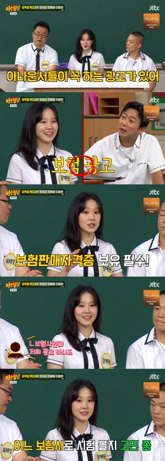 장예원은 "모든 광고는 그냥 찍을 수 있는데 보험 광고는 자격증이 필요하다. 보험 관리사 등 자격증을 따야 해서 아나운서들이 보통 30~40대에 많이 딴다"라고 설명했다. 이어 "라디오에서 얘기했더니 L사, K사 등 각종 보험사에서 전화가 왔다"고 밝혀 모두를 놀라게 했다.