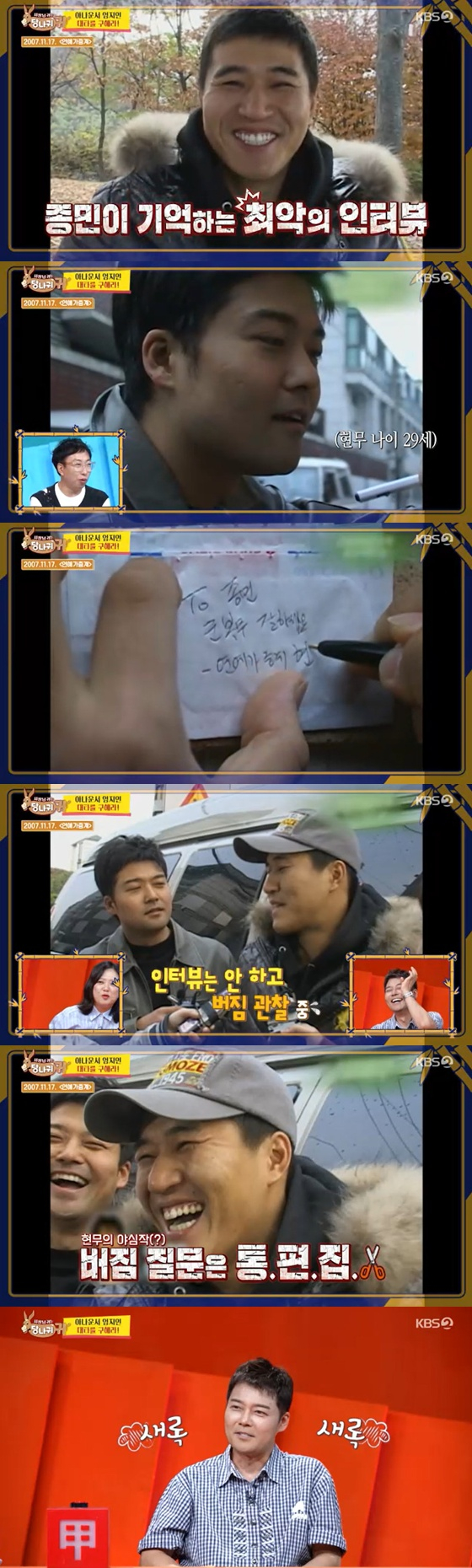이날 김종민은 KBS 아나운서 엄지인에게 "인터뷰를 많이 해봤기에 보면 딱 안다"라고 말했다.