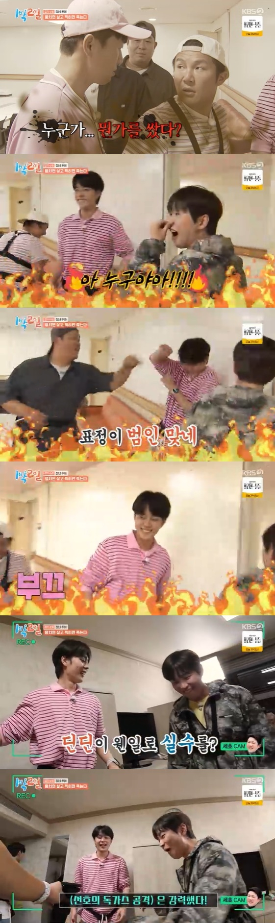 멤버들은 정렬을 가다듬은 뒤 다시 집중력을 끌어 올렸지만 예상치 못한 딘딘의 실수에 실망감을 감추지 못했다. 딘딘은 "유선호 방귀 때문에 멘탈 나갔다"라고 억울함을 호소해 모두를 폭소케 했다.