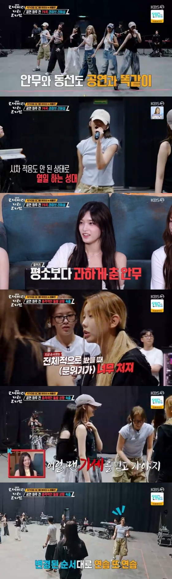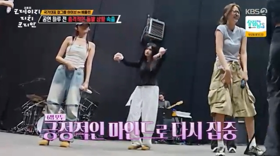특히 막내 이서는 안무 도중 중심을 잡지 못하고 휘청거리는가 하면 고개를 떨군 채 유독 힘든 표정을 지었다. 그는 "다음날 무대를 잘하고 싶은 마음에 더 열심히 췄더니 이렇게 됐다"며 "그 덕분에 본 공연에는 정말 잘했다"라고 환하게 웃었다.