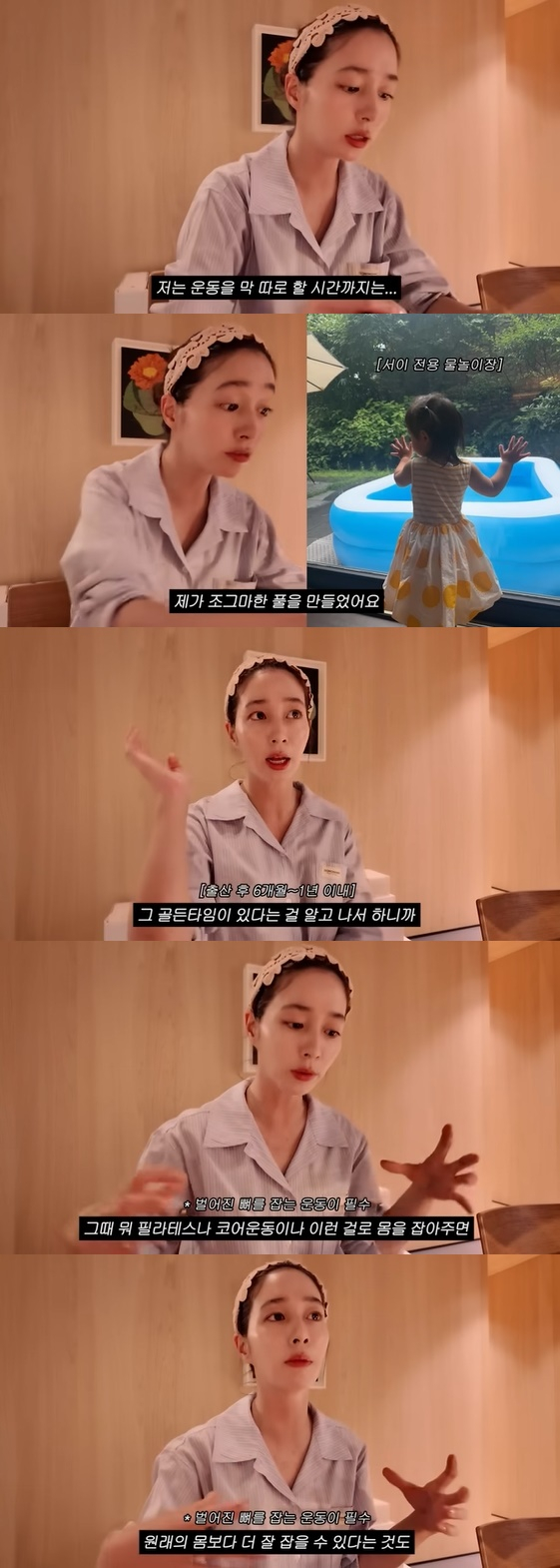 이어 "출산 후 두세달이 지나면 뼈나 몸이 가장 많이 움직이기는 시기가 된다. 필라테스나 코어 운동으로 몸을 잡아주면 원래의 몸보다 더 잘 잡을 수 있다"며 "둘째 때는 골든타임을 알고 나니까 더 빨리 돌아온 것 같다"고 털어놨다.