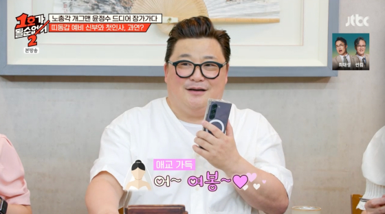 21일 방송된 JTBC 예능 프로그램 '1호가 될 순 없어 2'에서는 결혼을 앞둔 윤정수가 팽현숙, 최양락, 임미숙, 김학래, 이경실, 김지선과 만나는 모습이 그려졌다.