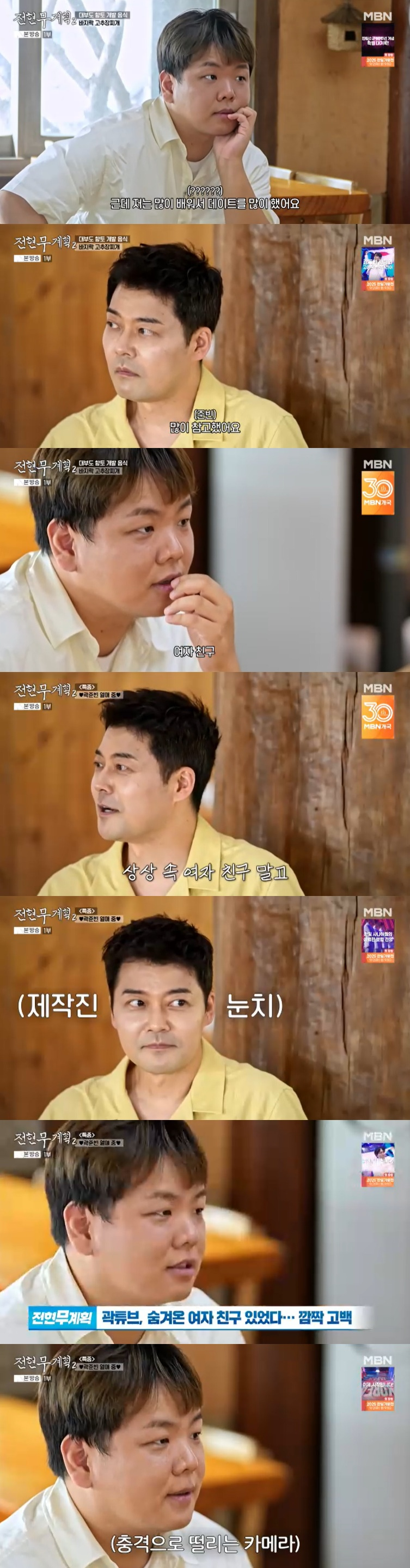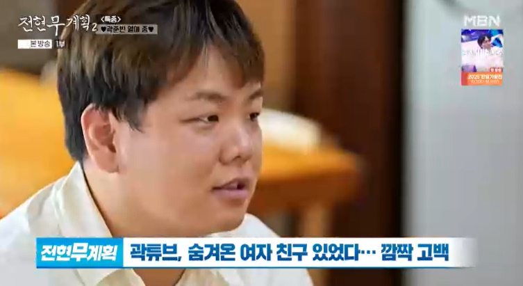 전현무는 놀라며 "너 여자친구 있어? 상상 말고"라고 물었고, 곽튜브는 "있다"라며 "꽤 (오래) 만났다"라고 밝혔다. 전현무는 "애니메이션 이런 거 말고"라고 했고, 곽튜브는 "운 좋게도 제가 예"라고 말했다.