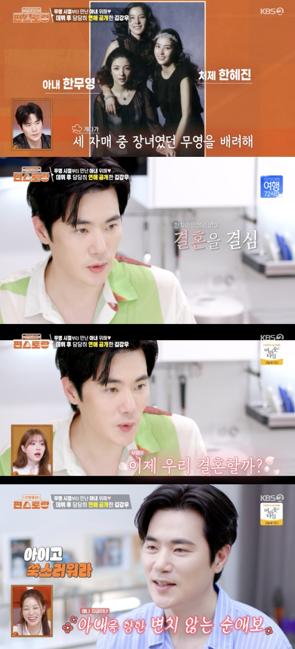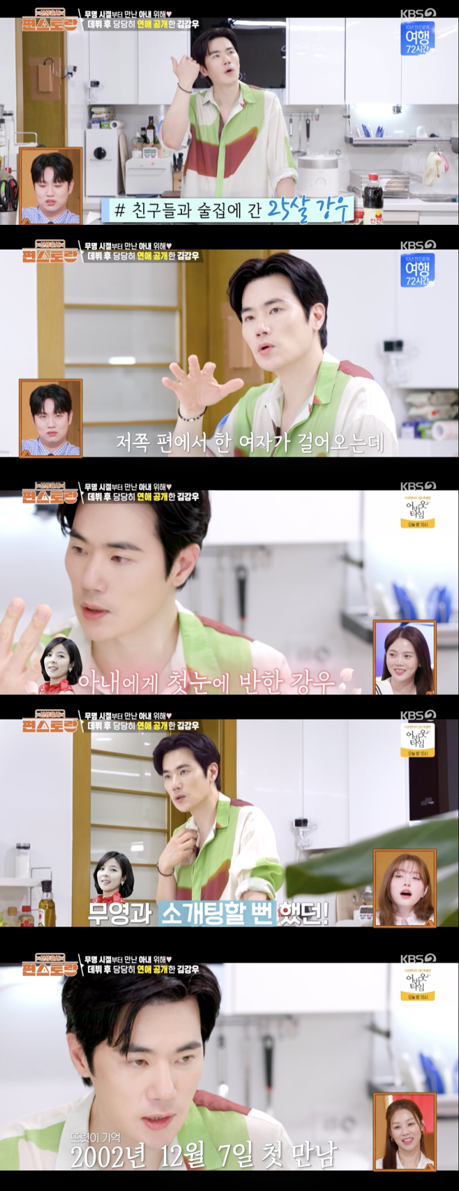 22일 방송된 KBS2 예능 프로그램 '신상출시 편스토랑'에서는 김강우가 결혼 15주년을 맞아 아내 무영과의 인연을 회상하며 결혼 생활의 소중한 의미를 전하는 모습이 그려졌다.