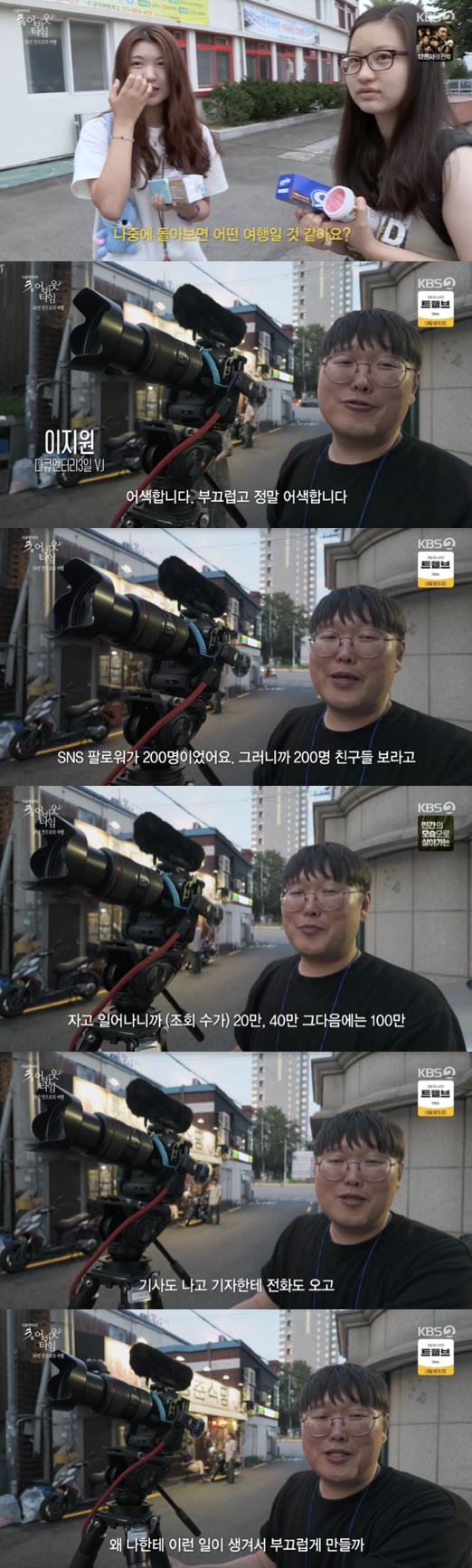 이지원 VJ는 방송에서 "어색합니다. 부끄럽고 정말 어색합니다. 어쩌다가 이렇게 돼서 너무 부끄럽습니다"라며 멋쩍게 웃었다. 이어 그는 당시 상황을 떠올리며 "SNS 팔로워가 200명이었다. 200명 친구들 보라고 나는 가기로 결정했는데 '갈까, 말까?' 그렇게 물어봤다. 그런데 자고 일어나니까 (조회수가) 20만, 40만, 그다음에는 100만이 됐다"고 회상했다.