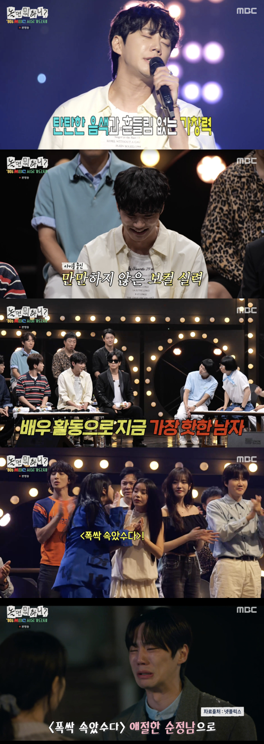 23일 방송된 MBC 예능 프로그램 '놀면 뭐하니?'에서는 '80s 서울가요제' 예선 합격자들의 첫 만남이 공개됐다. 이날 밴드 잔나비의 최정훈, 딘딘, 윤도현과 함께 배우 겸 가수 이준영이 닉네임 '굴렁쇠소년'으로 등장해 시선을 모았다.