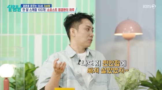 23일 방송된 KBS 2TV 예능 프로그램 '살림하는 남자들 시즌2'(이하 '살림남')에는 '홈쇼핑 완판남' 염경환의 일일 매니저로 나선 개그맨 지상렬의 모습이 그려졌다.
