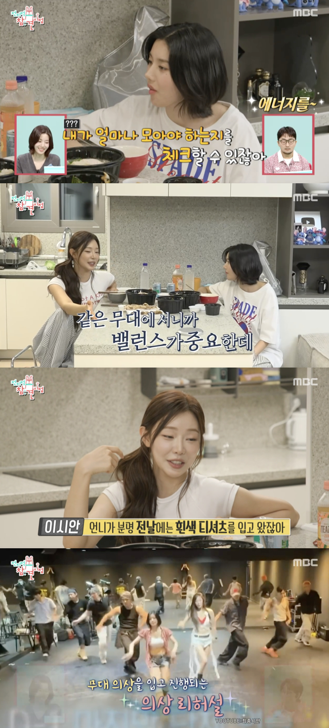 워터밤 의상과 관련된 비하인드도 전해졌다. 이시안은 "나는 언니 의상을 보면서 내가 얼마나 모아야 하는지를 체크할 수 있잖아. 같은 무대에 서니까 밸런스를 맞춰야 하잖아. 그런데 언니가 분명 전날에는 흰색 민소매를 입고 왔잖아"라며 본 무대와 리허설 의상이 달라진 점을 지적했다.