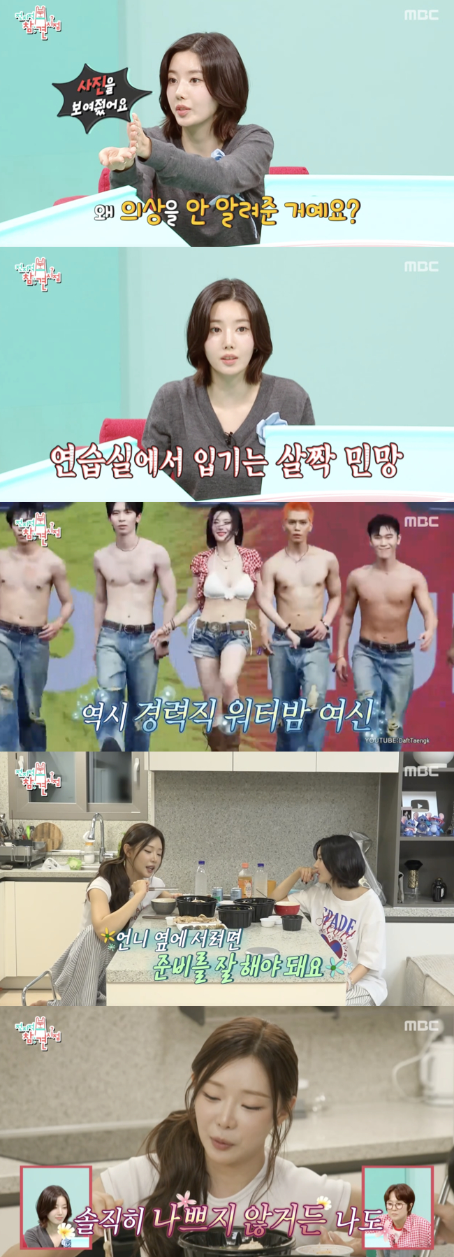 이에 홍현희가 "왜 실제 의상을 안 알려줬냐"라고 묻자 권은비는 "사진을 보여줬다. 무대에서 입는 건 괜찮은데 연습실에서 입기에는 민망했다. 사진은 봤는데 실제와 달랐을 줄은 몰랐던 것"이라고 해명했다.